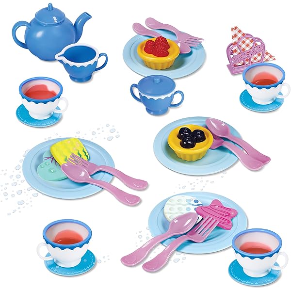 Amazon Com Kidzlane Play Tea Set For Little Girls Kids Tea Party Set With Water Activated Color Changing Tea Cups Cookies 34 Piece Tea Party Set For Little Girls